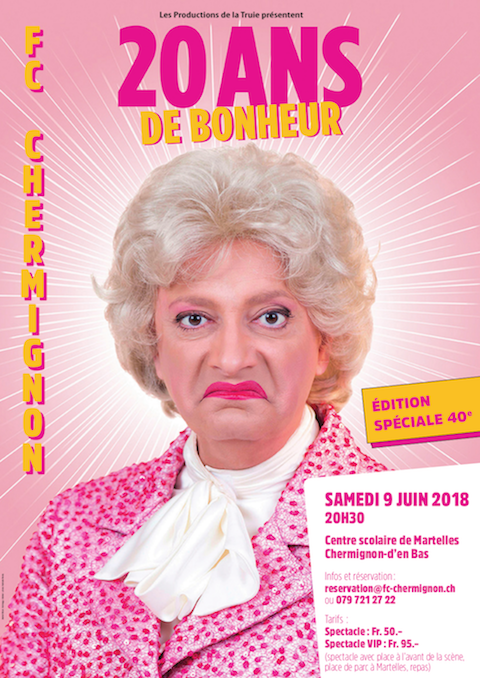 - 20h30 Spectacle de Marie-Thérèse Porchet, 20 ans de bonheur à la salle de Martelles à Chermignon