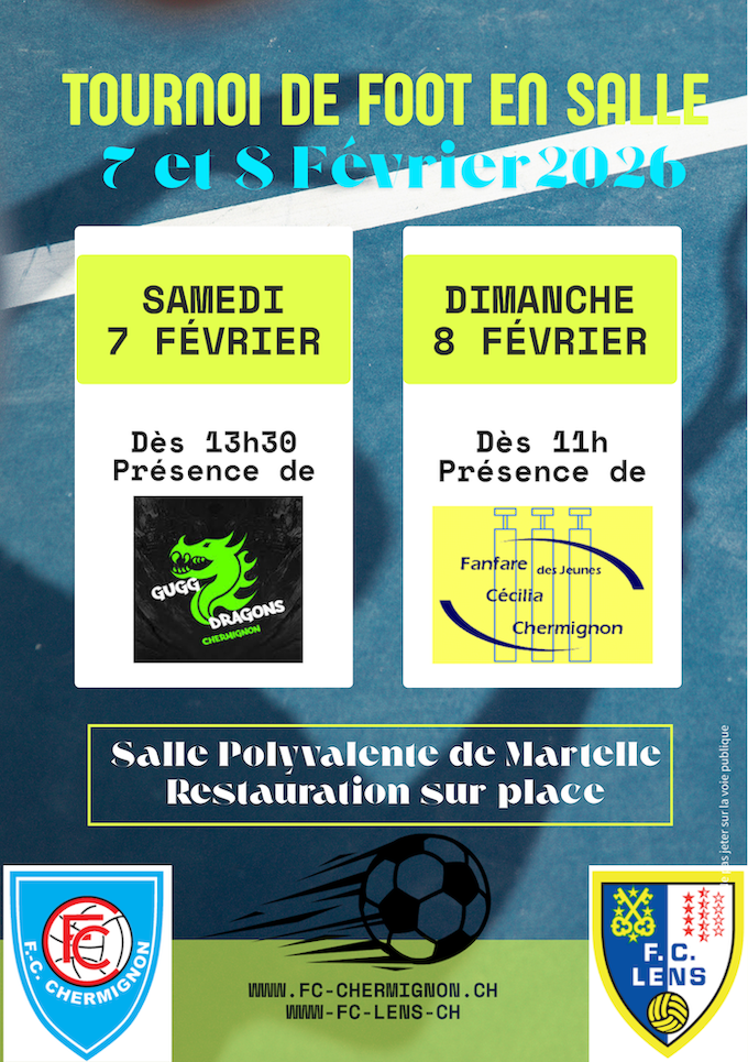 Prochain tournoi de foot en salle : 7 et 8 février 2026 - samedi juniors E (complet)- dimanche école de foot (complet)